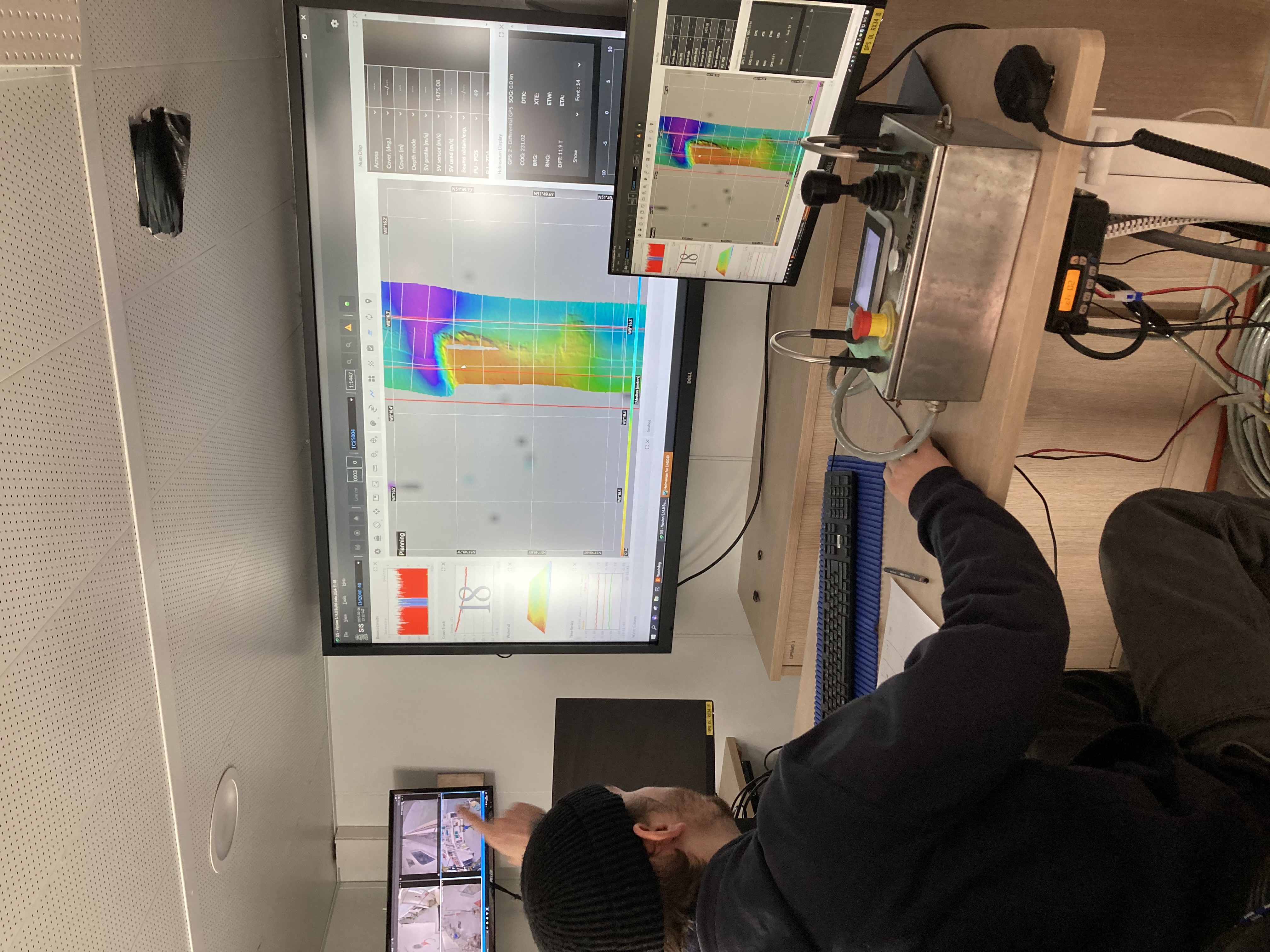 We performed bathymetric scans of the seabed in the waters around Cork, and I had the privilege of using the ship’s dual frequency multibeam echosounder to create live depth maps of the seafloor. It’s been a while since I collected my own bathymetry data, and I feel that I understand what I am processing much better when I have been a participant in the acquisition phase.
